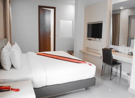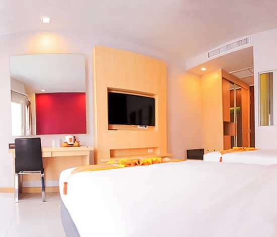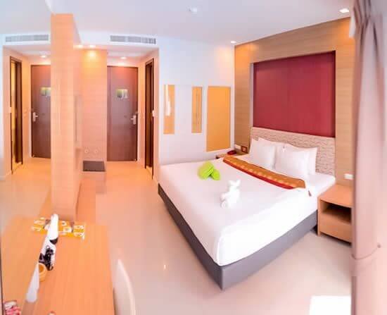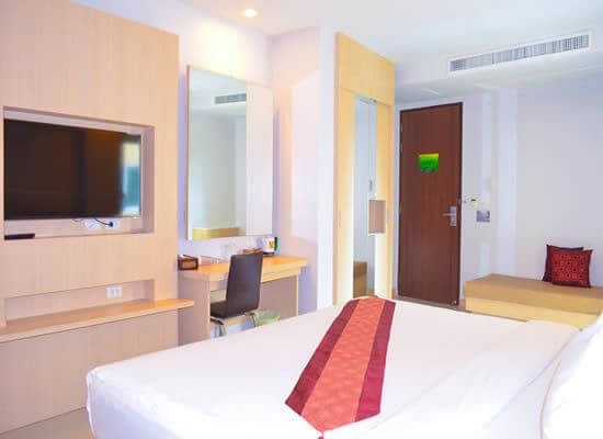В Люксе есть многофункциональная зона отдыха, оснащенная рабочим столом, освещенным зеркалом для макияжа и уютным диваном с маленькими подушками, который при необходимости можно быстро превратить в дополнительную кровать для ребенка. Прочувствуйте ежедневную оригинальность без потери современного комфорта. С выбором больших односпальных кроватей и 7 кроватей размером Кинг-сайз, мы гарантируем вам максимальный комфорт! Выйдя на балкон, вы удивитесь чистому и прохладному воздуху Патонг с холмами у вас за спиной и улицей Rat- U- Thit перед вами. Люкс предлагает больше, чем просто вид на бассейн.